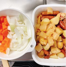 1. Cut onions into wedges, carrots into chunks, and the remaining oden ingredients into bite-sized pieces.