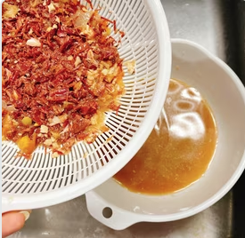 2. Strain the remaining oden soup stock through a colander. It is a little tedious, but it looks better and gets tasty if you strain it.