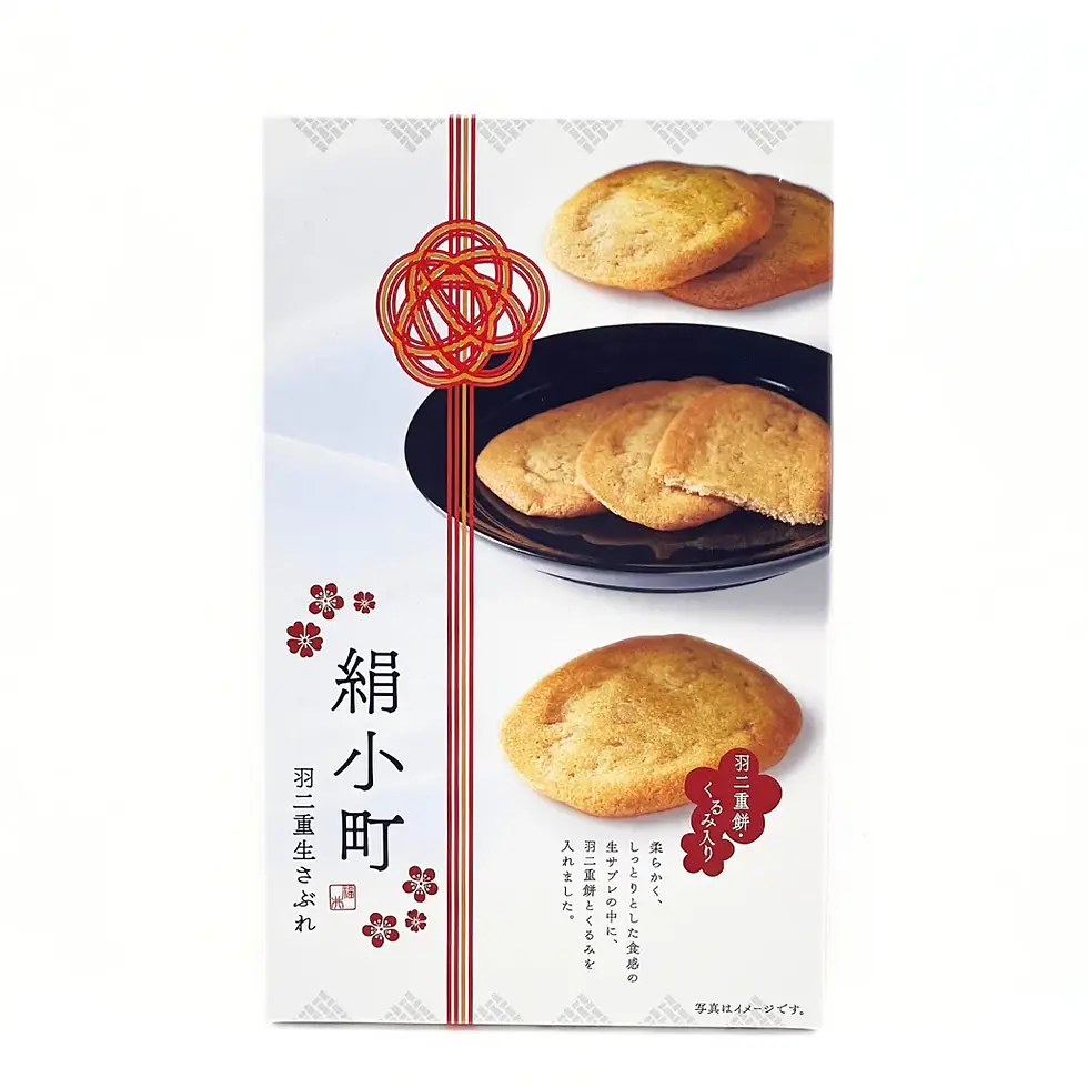 This is a moist baked pastry made of habutae mochi rice cake kneaded with plenty of walnuts and wrapped in sable dough. Habutae mochi is a Japanese confectionery from Fukui Prefecture, made from only glutinous rice flour, sugar, and starch syrup. It is derived from habutae, a silk fabric that is a specialty of the prefecture, and is characterized by its silky smooth texture that melts slightly in the mouth. You can enjoy the soft and gooey texture of these baked pastries. The walnuts give you a unique texture by being added in the soft sable cookies.