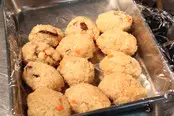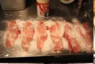 7. Divide into 6 equal parts and roll up what you prepared in step 5 with the meat prepared in step 6. (In this photo, there are 12 pieces instead of 6.)